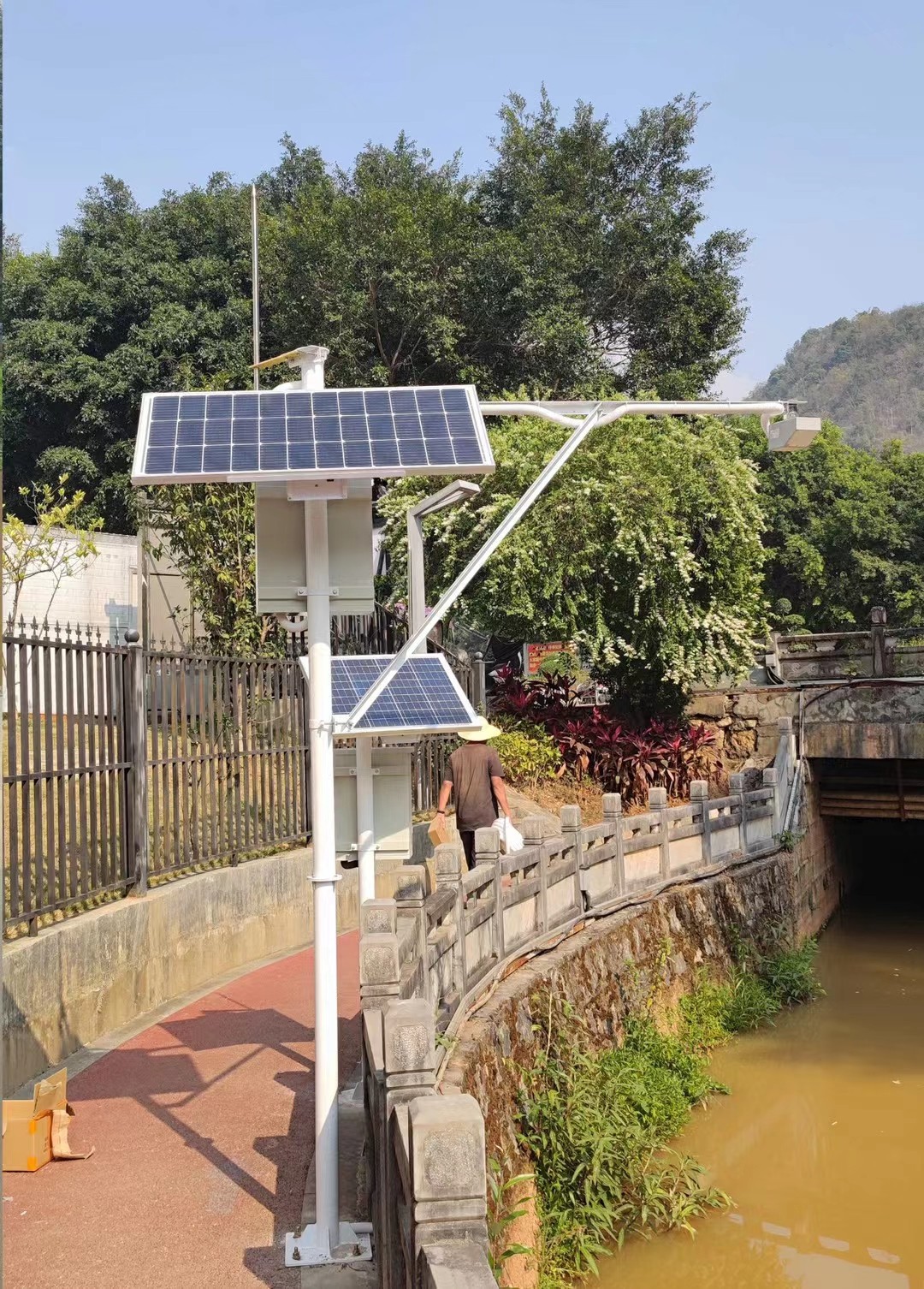 系统组成硬件设备:雨量计、投入式/超声波液位传感器、水质传感器、流量计、智能控制箱等;