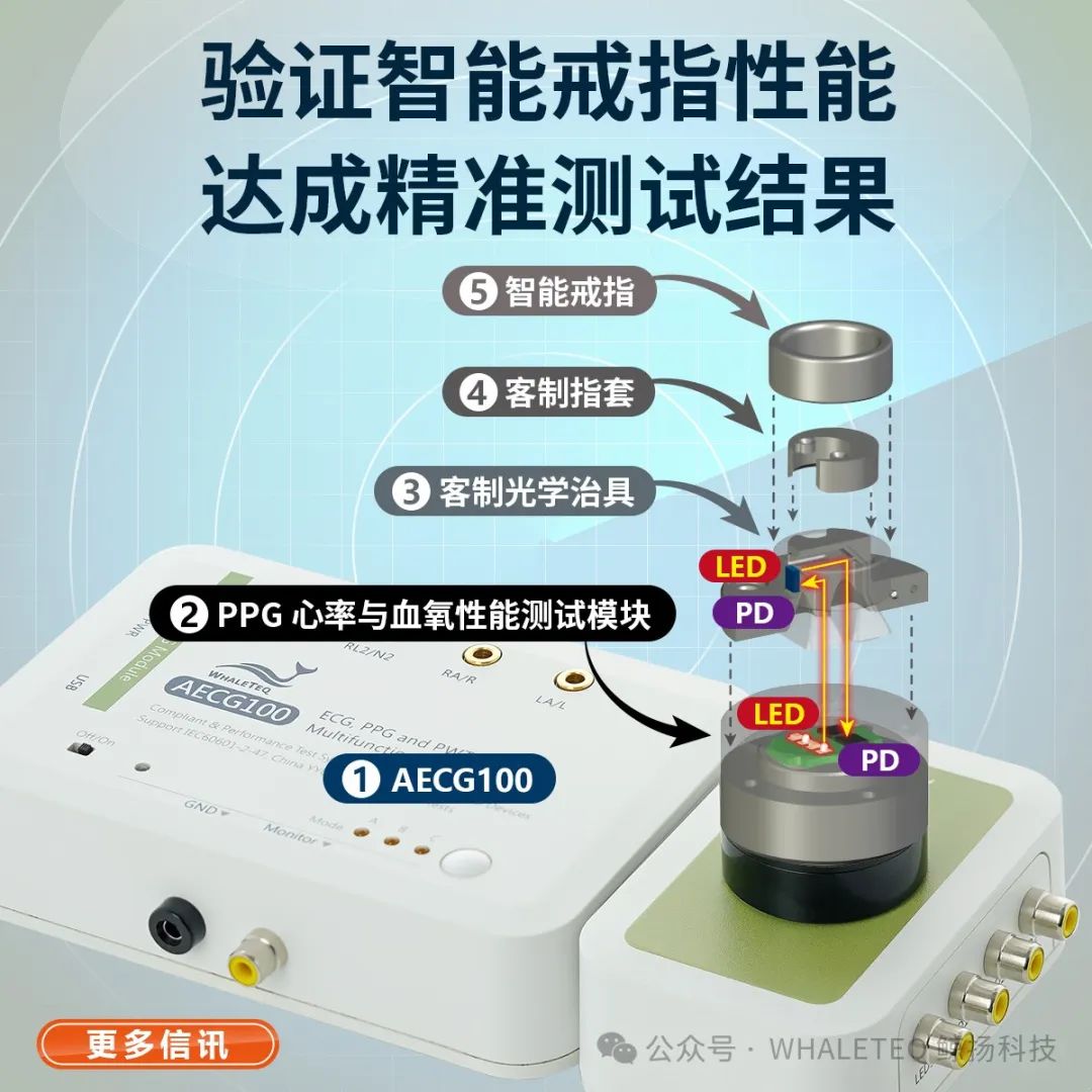 有鉴于此,鲸扬科技在既有主打产品AECG100创新多功能模拟器的基础下,开发出专为智能戒指量身打造的性能测试方案,提供客户符合IEC 60601-2-47的标准测试,加速产品研发时程,提升产品可靠度。