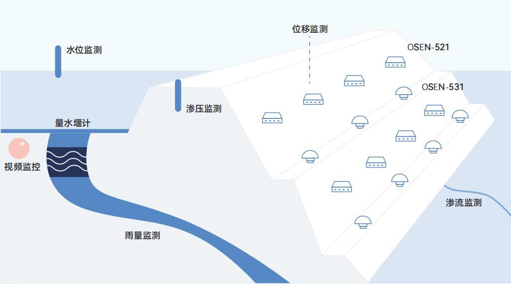 大坝地质灾害安全监测系统常规的监测包括渗压监测站、渗流监测站、变形监测站。