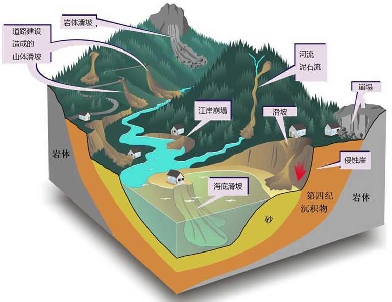 地质灾害:泥石流、山体滑坡、地面沉降、地面塌陷
