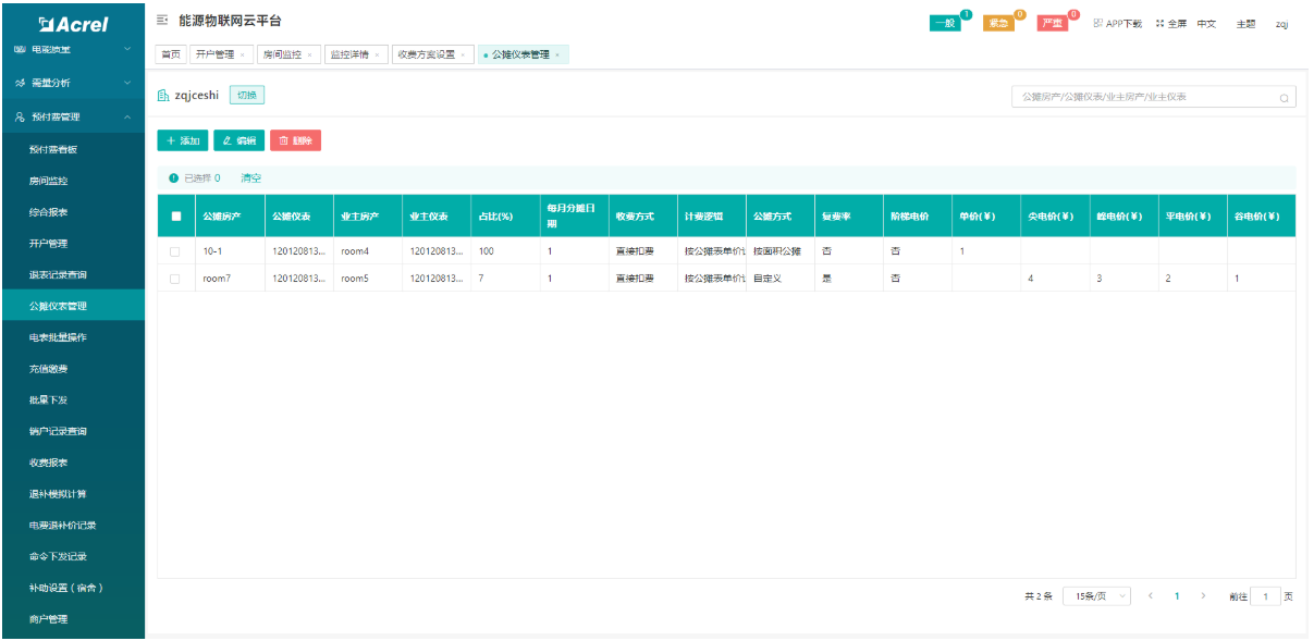 *某块表为主表,然后分配关联子表,系统每个月自动将主表的用电按比例换算成电费从子表中扣除,这样可以剩余人工统计的麻烦。公摊方式多样,可以根据比例公摊,按房间面积公摊,按用量公排,收费方式有直接扣费或者生成维费账单。
