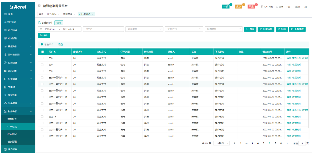 按日期生成后付费用户周期用电费用,对数据进行确认后生成缴费账单方便追踪客户缴费情况可导出缴费账单以及欠费账单通知客户。