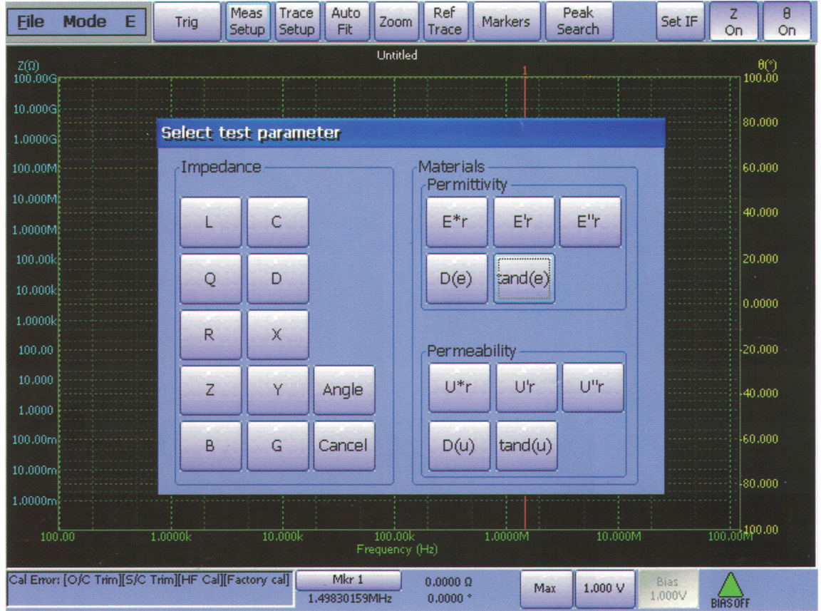 WayneKerr6500B精密阻抗分析仪,软件选配有材料测试软件(订购代码/K),这个软件只能安装在精密阻抗分析仪上,不能安装在6500P的高频LCR表上。通过这个软件可以更容易的计算出相对磁导率的相关参数,软件接口如下: