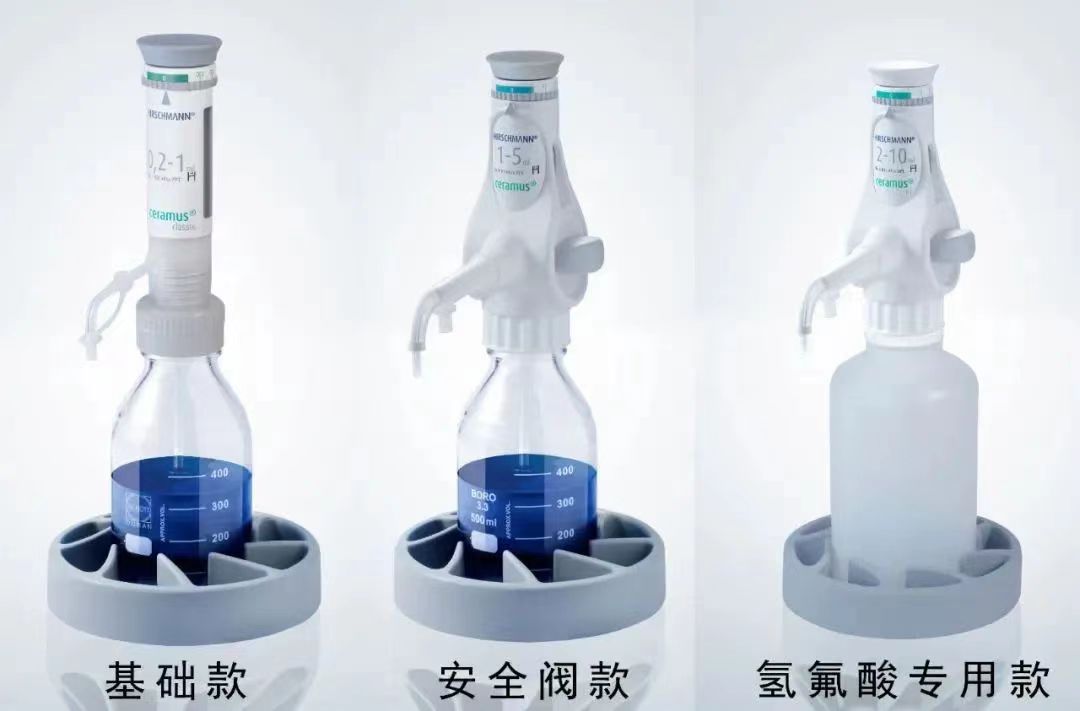 赫施曼瓶口分配器可代替量筒、刻度移液管,便捷、安全地进行0.2-60mL的常规液体(酸、碱、有机试剂等)的移取,而实验室移取小体积(几微升到几毫升)的液体,一般采用移液器。Miragen电动移液器,数值靠设定或选定,电机控制活塞运动,吸液和排液也更加稳定,还有步骤少、调数快、模式多等诸多优势。