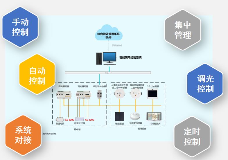 尤其突出的优势是管理优势,改变了传统的操作方式,可以借助各种预设置控制方式及控制元件,对不同条件下的照度进行合理管理及设置来达到节能效果