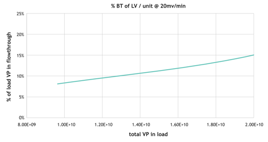 图3.15%穿透时,每根离心柱的动态结合载量1.9E+10。Nereus LentiHERO™离心柱以20 mv/min的速度上样,流穿收集在10mL液体中,使用p24 ELISA分析,基于上样的总VP,计算VP穿透百分比。