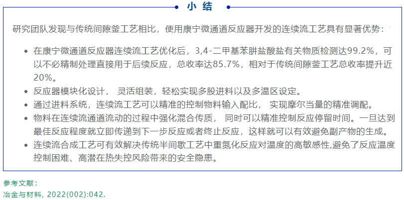 上药康丽(常州)药业有限公司利用康宁G1反应器开发的连续流合成工艺可以很好的解决这些问题。