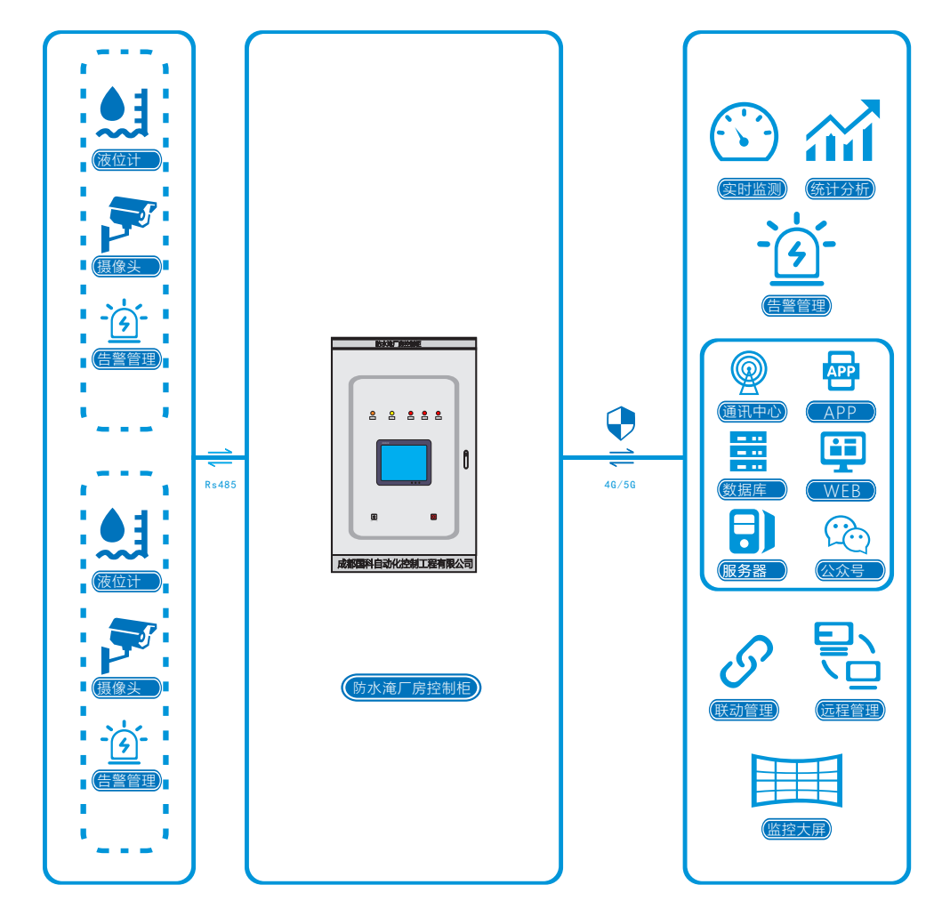 成都国科GKFC3100系列防水淹厂房联动报警系统,作为“远程监控,无人值班”电站安全生产的一项重要技术保护措施,在出现水淹厂房时能及时可靠报警,并且能直接发令使机组停机或关闭蝶阀(快速闸门),防止事故扩大。