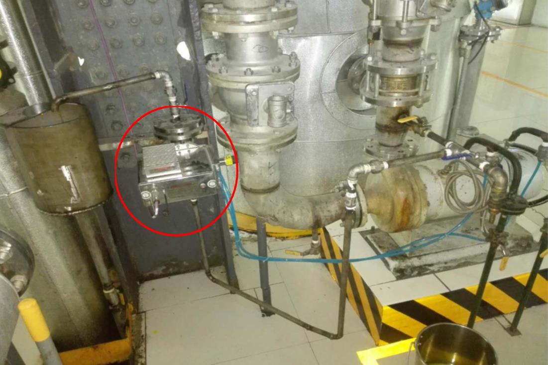 选取特定的测量附件流通池X-cell,确保毛油在流通池内平稳的流动,降低测量的误差。主机探头采用固定光栅型近红外,无可移动部件,检测速度快,适用于工业生产车间。现场安装图如图3所示。