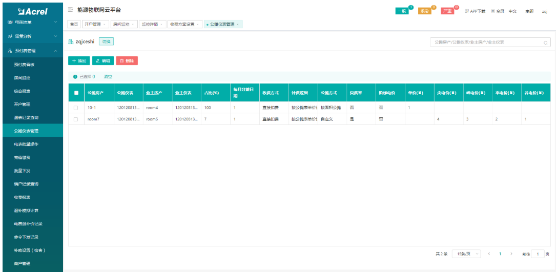 设定某块表为主表,然后分配关联子表,系统每个月自动将主表的用电按比例换算成电费从子表中扣除,这样可以剩余人工统计的麻烦。公摊方式多样,可以根据比例公摊,按房间面积公摊,按用量公排,收费方式有直接扣费或者生成维费账单。
