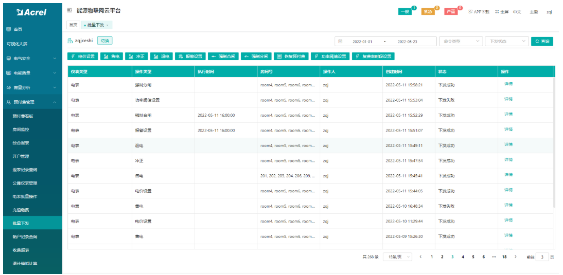 为了方便用户对大量仪表进行管理和设置,可以在系统中新建批量操作任务,比如设置电价、电表控制、仪表设置、充值等,批量任务可以立即执行,也可以定时执行。