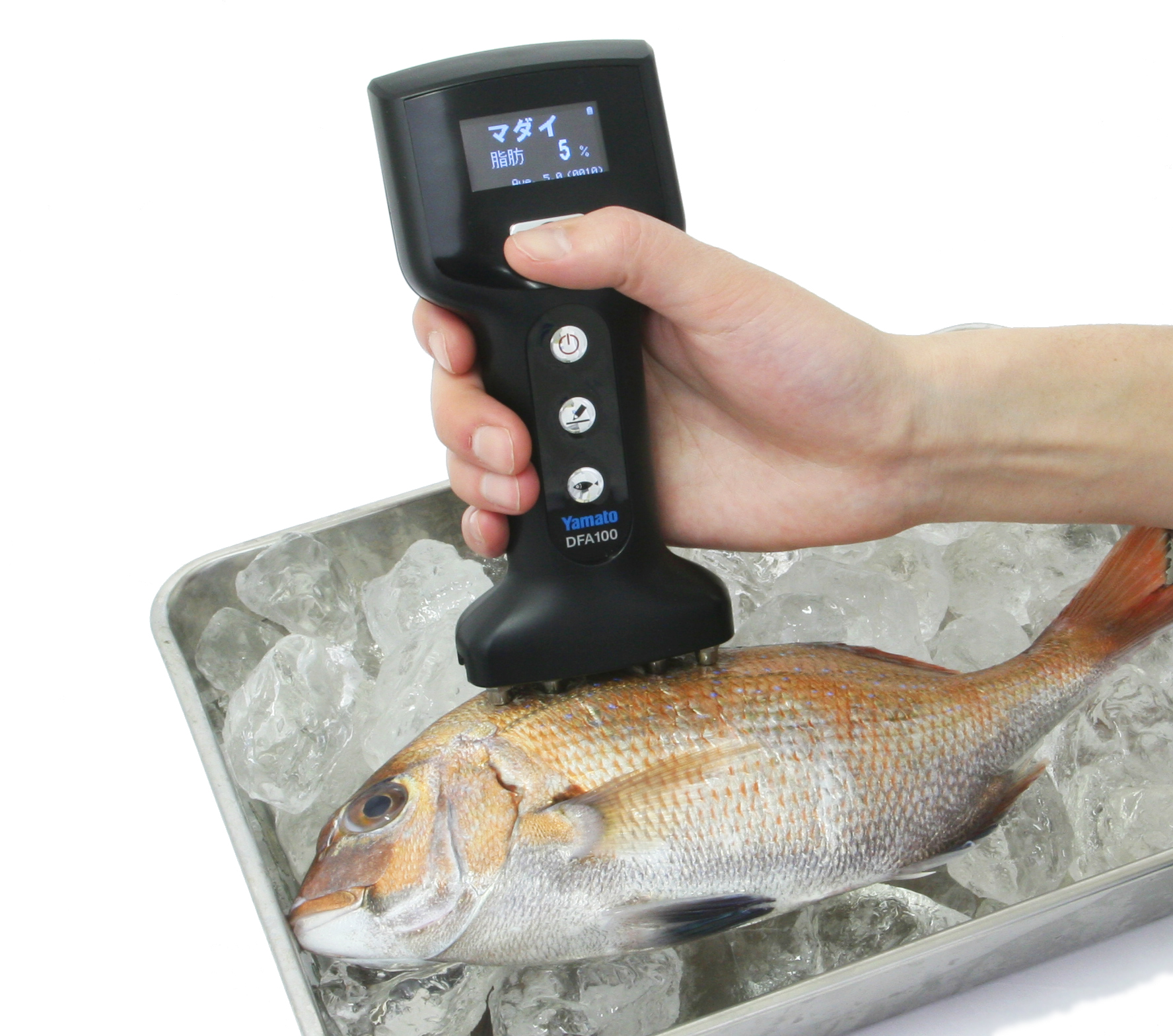 配备新鲜度测量功能的Fish AnalyzerTMDFA100的更新版本。除了现有的14种鱼类(竹荚鱼、鲭鱼、沙丁鱼、秋刀鱼、鰤鱼、金枪鱼、黑青花鱼、红鲷鱼、金鲷鱼、鲣鱼、鲑鱼、虹鳟鱼、西班牙青花鱼、日本青花鱼)以外,还有6种鱼类(鲈鱼、沙鱼、青花鱼、鲭鱼、海鳗)新增20种鱼类(竹荚鱼),现在可以测定总共20种鱼类的脂肪率,并且可以测定脂肪率。校准曲线模式下各种鱼类的脂肪含量。您还可以显示所测量鱼类的平均脂肪百分比。此外,即使在室外阳光直射的情况下,显示屏也很明亮且易于查看。凭借其多种功能,它是一种可用于渔业、渔业、食品加工业等许多海洋工业的产品。