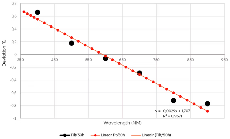 Admesy利用其在滤片涂层方面的丰富经验,开发了这些多通道带通传感器。这项技术的进步使波长倾斜(漂移)随时间的监测和校正成为可能,从而大大降低了在整个灯的典型50小时使用寿命期间校准数据的不确定性。此外,改进的设计允许超过50小时的长时间使用,有效地降低了与校准灯相关的总体成本。此外,三个传感器设置提供冗余,确保高度精确的倾斜校正。