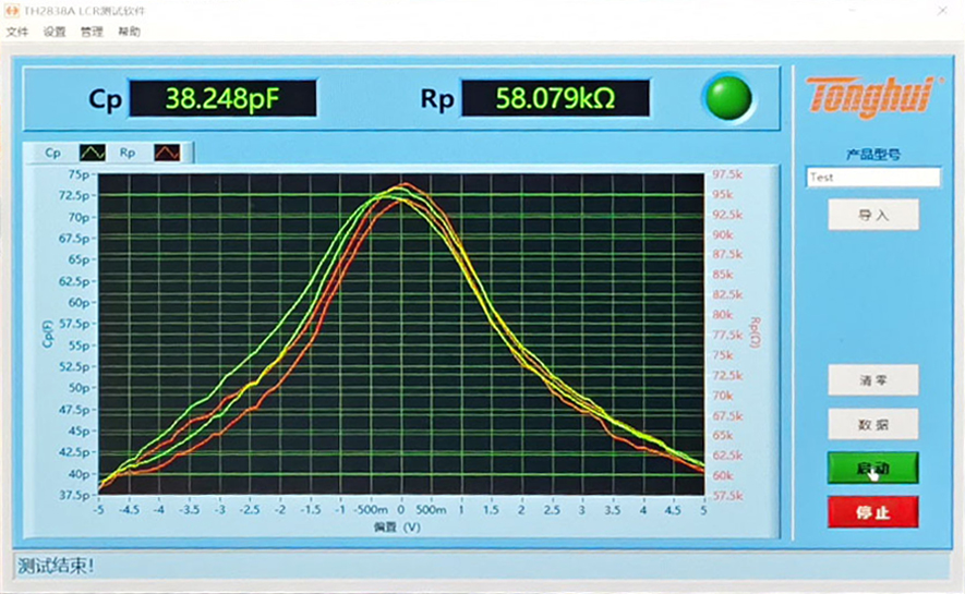 C-V特性曲线是用来测量半导体材料和器件的一种方法,TH2838A+TH1992B的组合方案,也可提供高精度的C-V曲线分析。