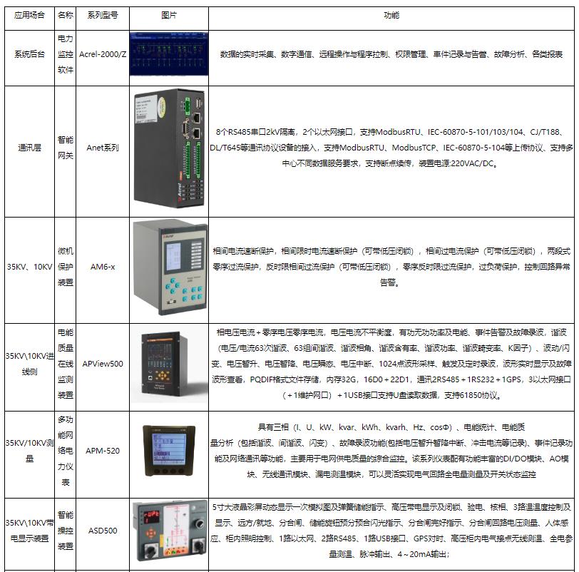 Acrel-2000E配电室综合监控系统,可实现开关柜运行监控、高压开关柜带电显示、母线及电缆测温监测、环境温湿度监测、有害气体监测、安防监控,可对灯光、风机、除湿机、空调控制等设备进行联动控制。实现动力环境各数据的检测与设备控制,优化动力环境,避免运行环境的失控导致配电设备运行故障,保证维护人员安全,延长设备使用寿命,实现配电动力环境的分布式远程管理。