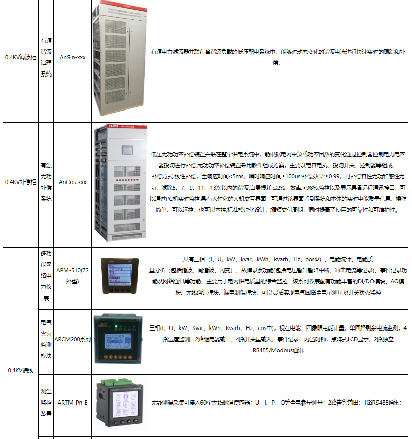 AnSinI系列有源电力滤波装置,以并联方式接入电网,通过实时检测负载的谐波和无功分量,采用PWM变流技术,从变流器中产生一个和当前谐波分量和无功分量对应的反向分量并实时注入电力系统,从而实现谐波治理和无功补偿。