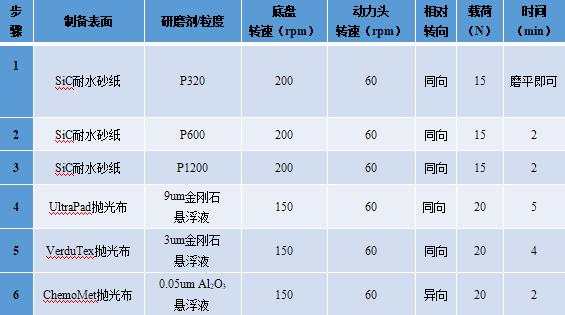 2)以上研磨与抛光参数仅供参考,可根据具体材料情况进行调整。