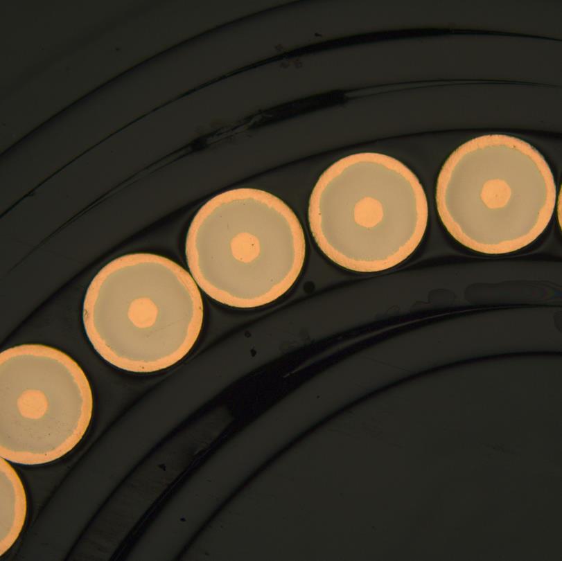 研磨结束后,使用9微米的多晶金刚石悬浮液搭配硬编织抛光布来去除试样划痕。如TexMet C抛光布,具有更高的材料去除率,并有助于提高试样的平整度。MetaDi多晶金刚石悬浮液中的多晶金刚石具有更多的切割面,可更快地去除损伤变形及划痕,获得更好的表面质量。对于铜线,需增加3微米和1微米的抛光步骤,再进行终抛。终抛推荐使用0.02微米 MasterMet2氧化硅抛光液,在ChemoMet柔软多孔的耐化学腐蚀合成布上进行抛光。