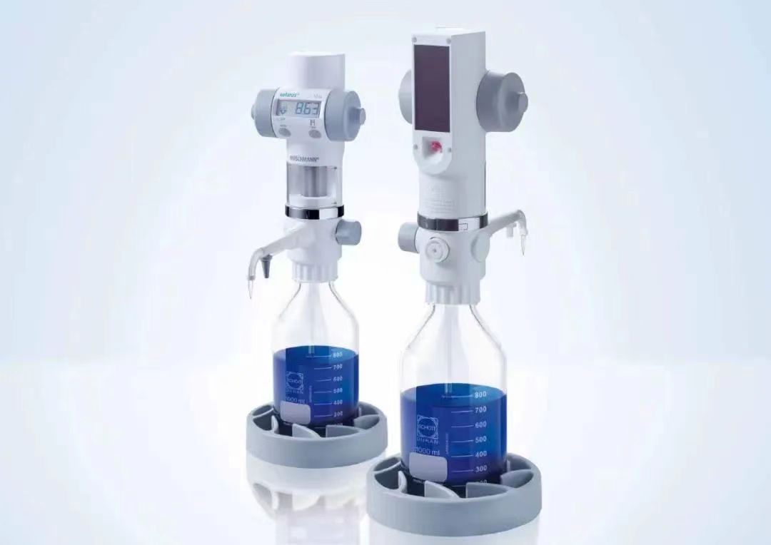 赫施曼的光能滴定器可抽提加液、手转硅胶轮控制滴定速度和体积;而opus电子滴定器可通过触屏来进行灌液、预滴定(设定单次添加的体积)、快速滴定和半滴滴定等功能。两种滴定器均为屏幕直接读数,可提高工作效率、降低目视误差,无需大量实操经验,降低了培训成本和人员个体差异,所得数据也更加准确、稳定。