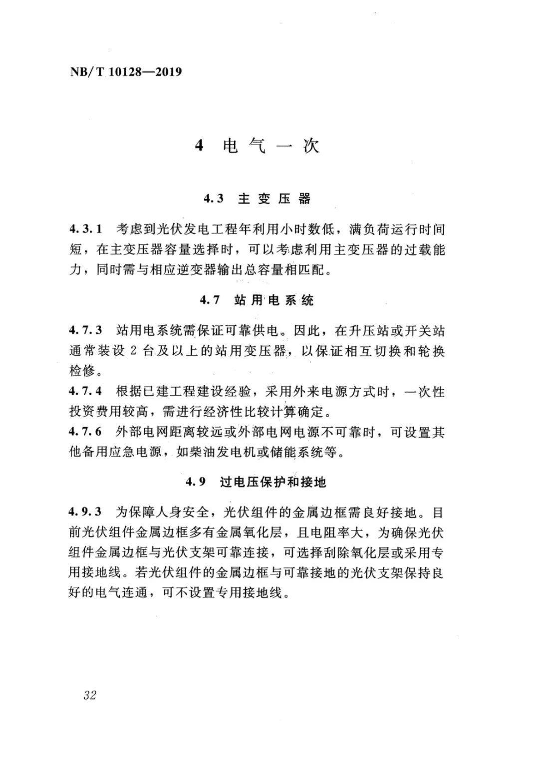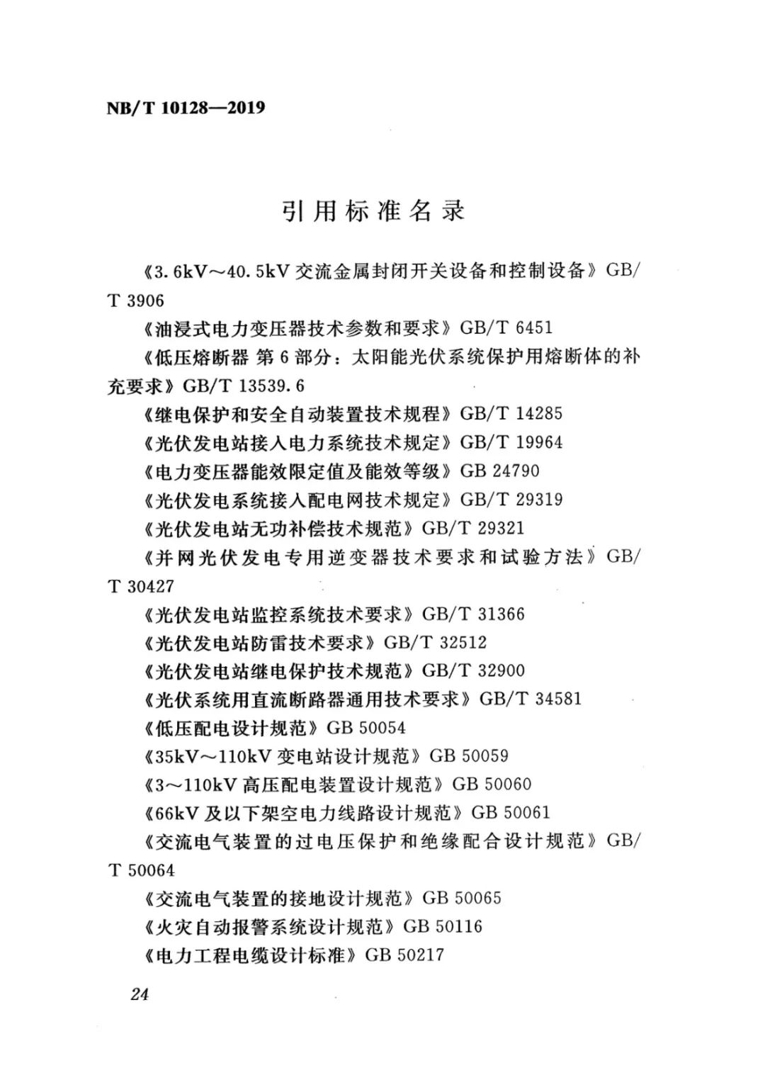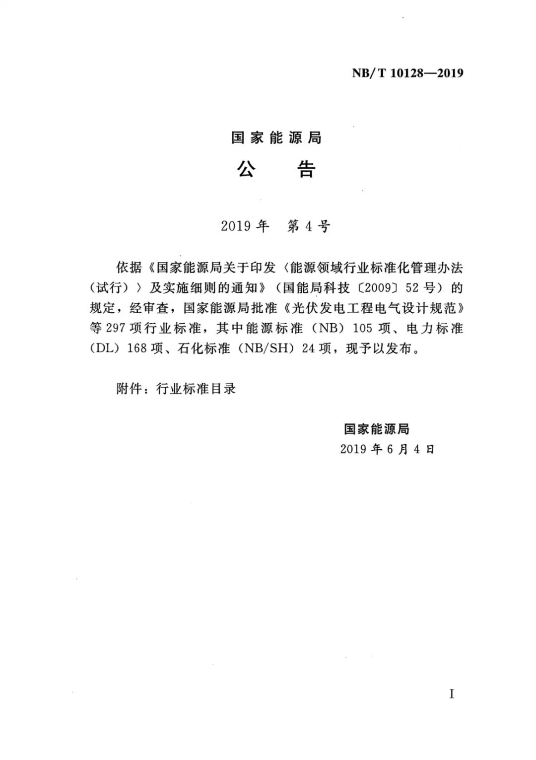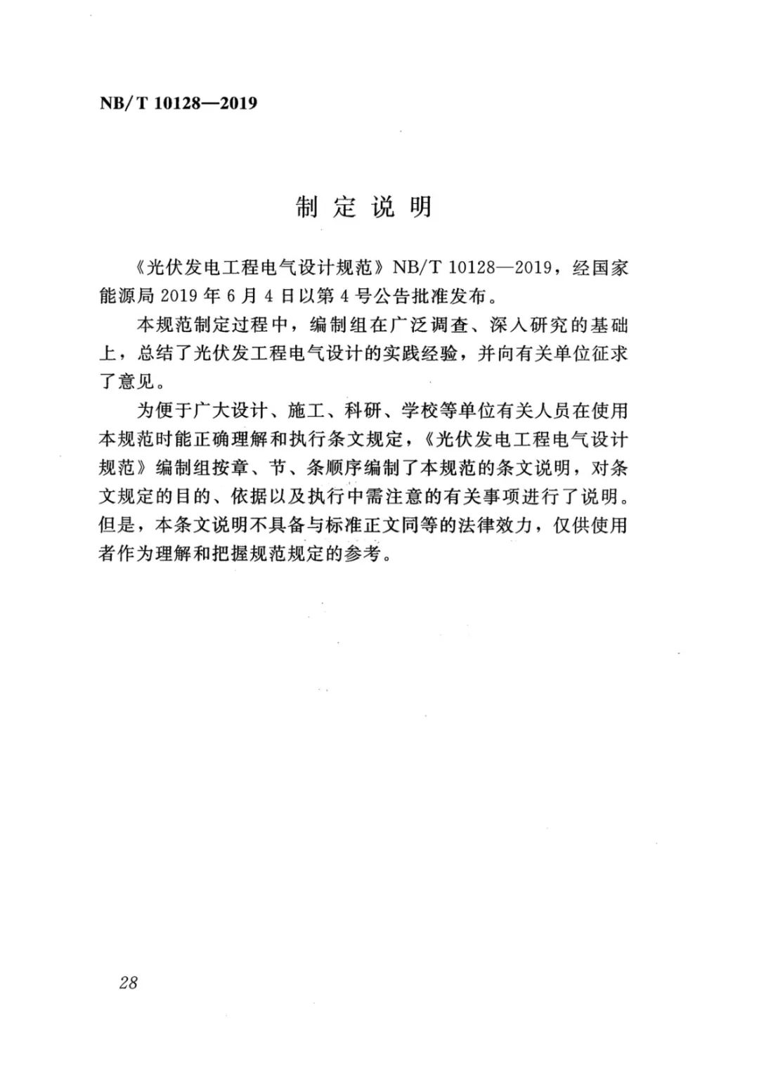 〖标准号〗NB/T 10128-2019〖标准中文名称〗光伏发电工程电气设计规范〖标准英文名称〗