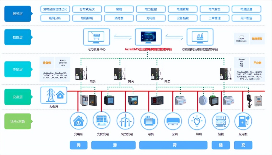 AcrelEMS企业微电网能效管理平台,平台融入了多个功能模块,各功能模块数据互联互通,合理互动1377-443-0992。