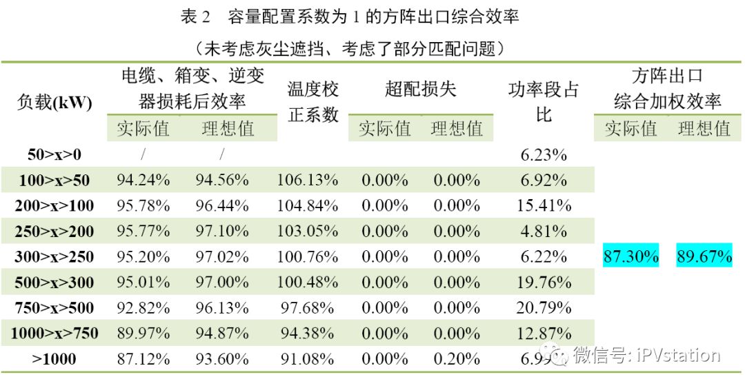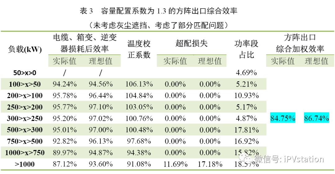 根据计算结果,认为:在容量配置系数(CCC)为1.3时,考虑超配的功率损失后,光伏方阵的出口加权效率减低。综合分析,本地区的容量配置系数应小于1.3。