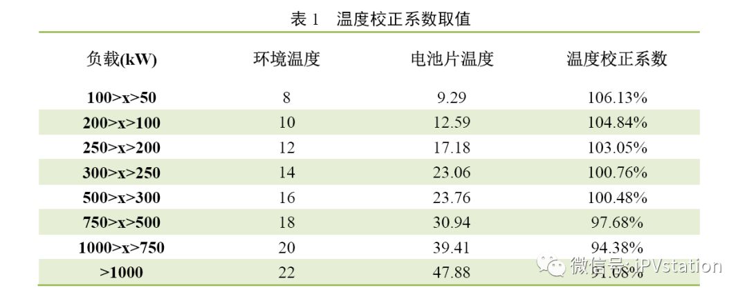 为简化模型,本文结合实际正常气候特点,即:环境温度随着功率增加线性增长。光伏组件内电池片的温度校正方阵参考历史文章《光伏组件及电池片的IEC温度校正经验公式》。针对本文,环境温度与电池片温度关系及温度校正系数如下: