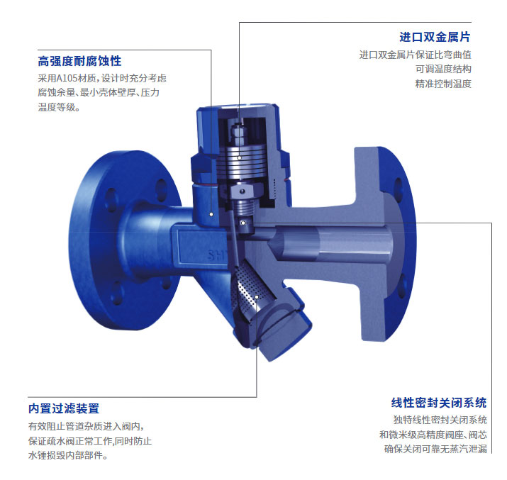 ● 内置过滤器,使疏水阀在洁净的环境工作。