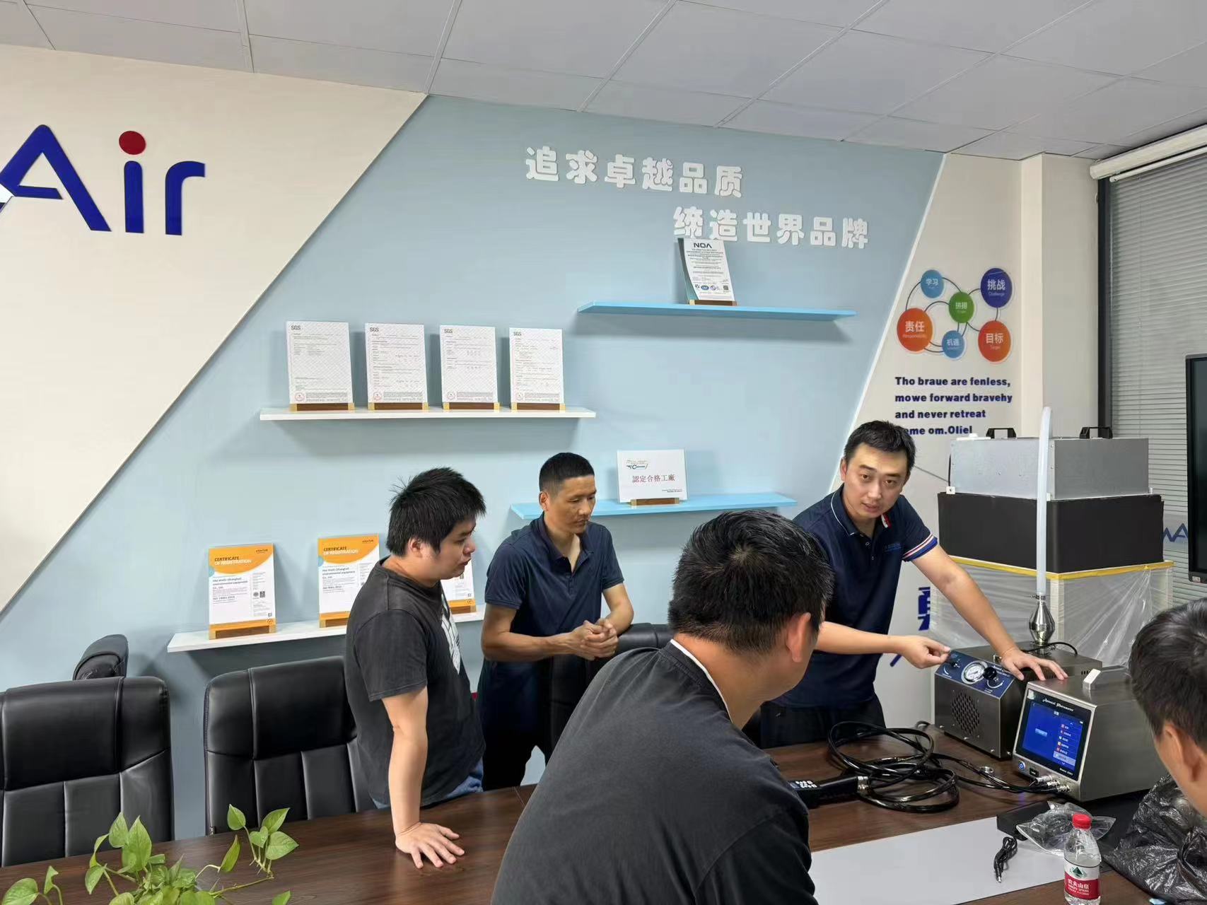热发生器是通过设备内部加热元件将液态气溶胶快速转变为蒸汽状态,通过惰性气体(如:氮气,二氧化碳等)助力,将蒸汽快速冷却生成多分散气溶胶烟雾输出到高效过滤器上游。去掉过大和过小的液滴后留下0.3μm左右的雾状PAO进入风道,粒径分布在0.3左右μm。