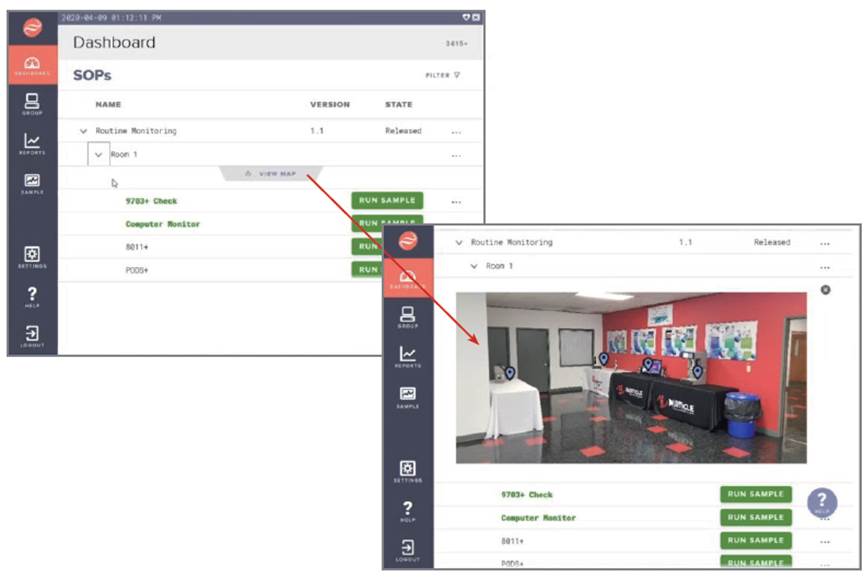 使用MET ONE 3400+,用户可在计数器内部创建交互式的SOP采样图,指导技术人员在何处取样,如何在每个取样点布置取样探头,并指示每个位置是否取样完成,主管可通过web浏览器远程复核和审批当天的监测。