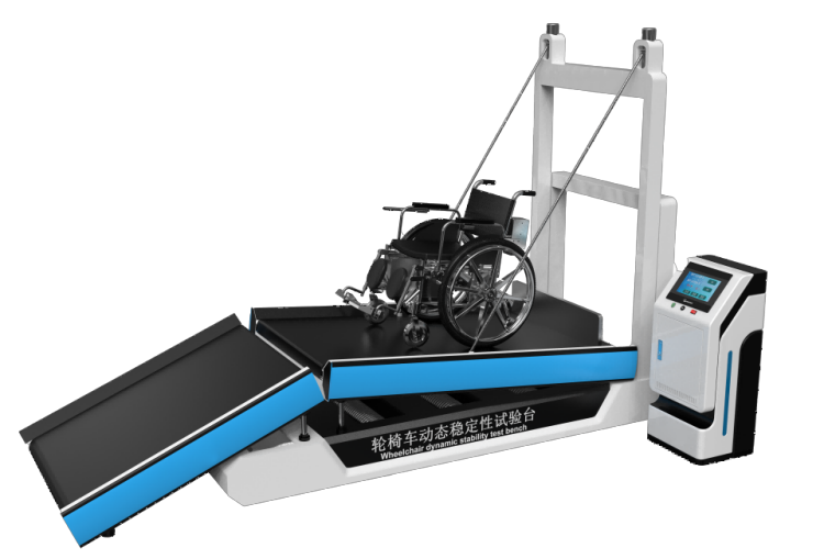 动态稳定性试验台通常配备有可调节的测试台面,能够模拟不同坡度和路况,以便对轮椅车在不同条件下的动态性能进行测试。同时,试验台还具备测控角度数等参数的功能,能够精确地控制测试条件,确保测试结果的准确性。