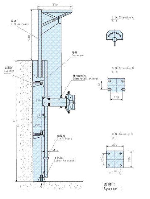 调节池潜水搅拌机的工作原理及潜水推进器CAD安装图、结构图