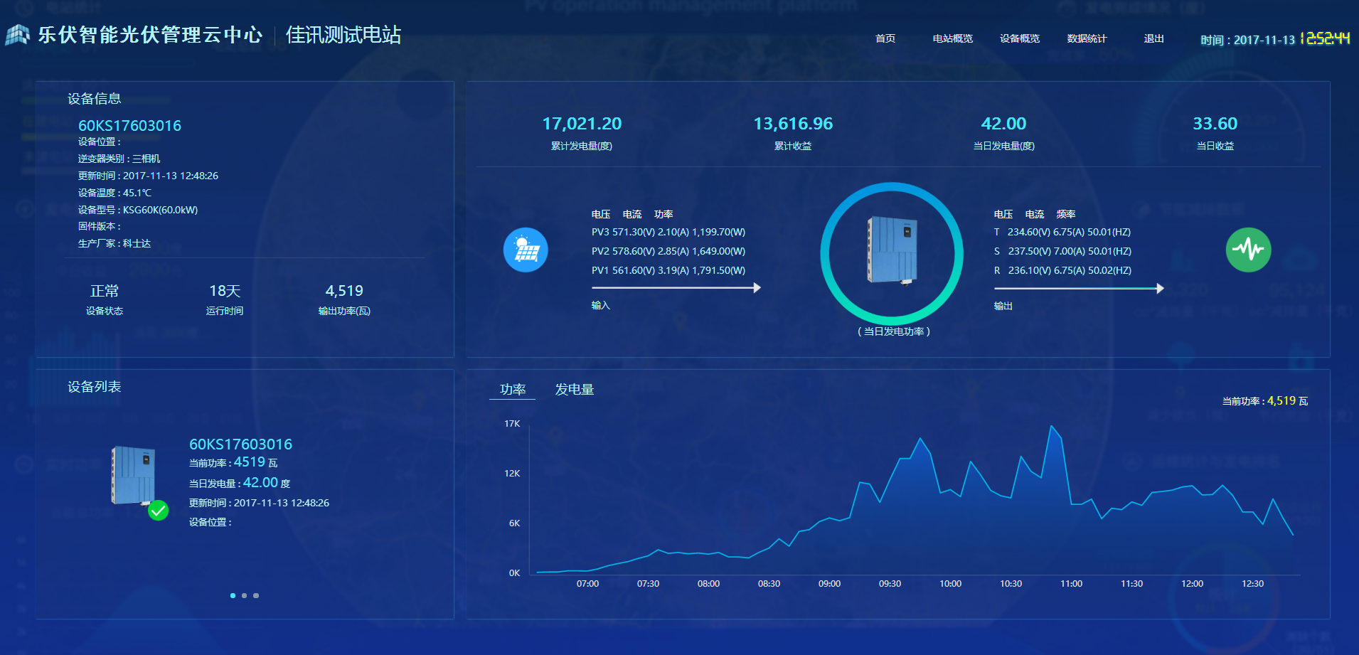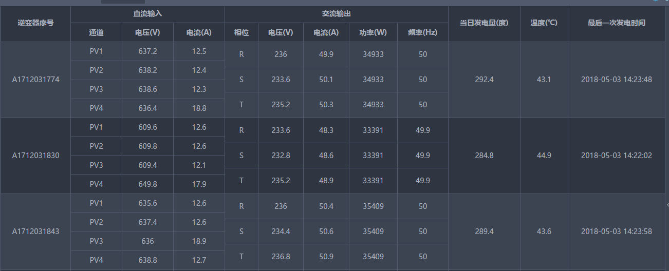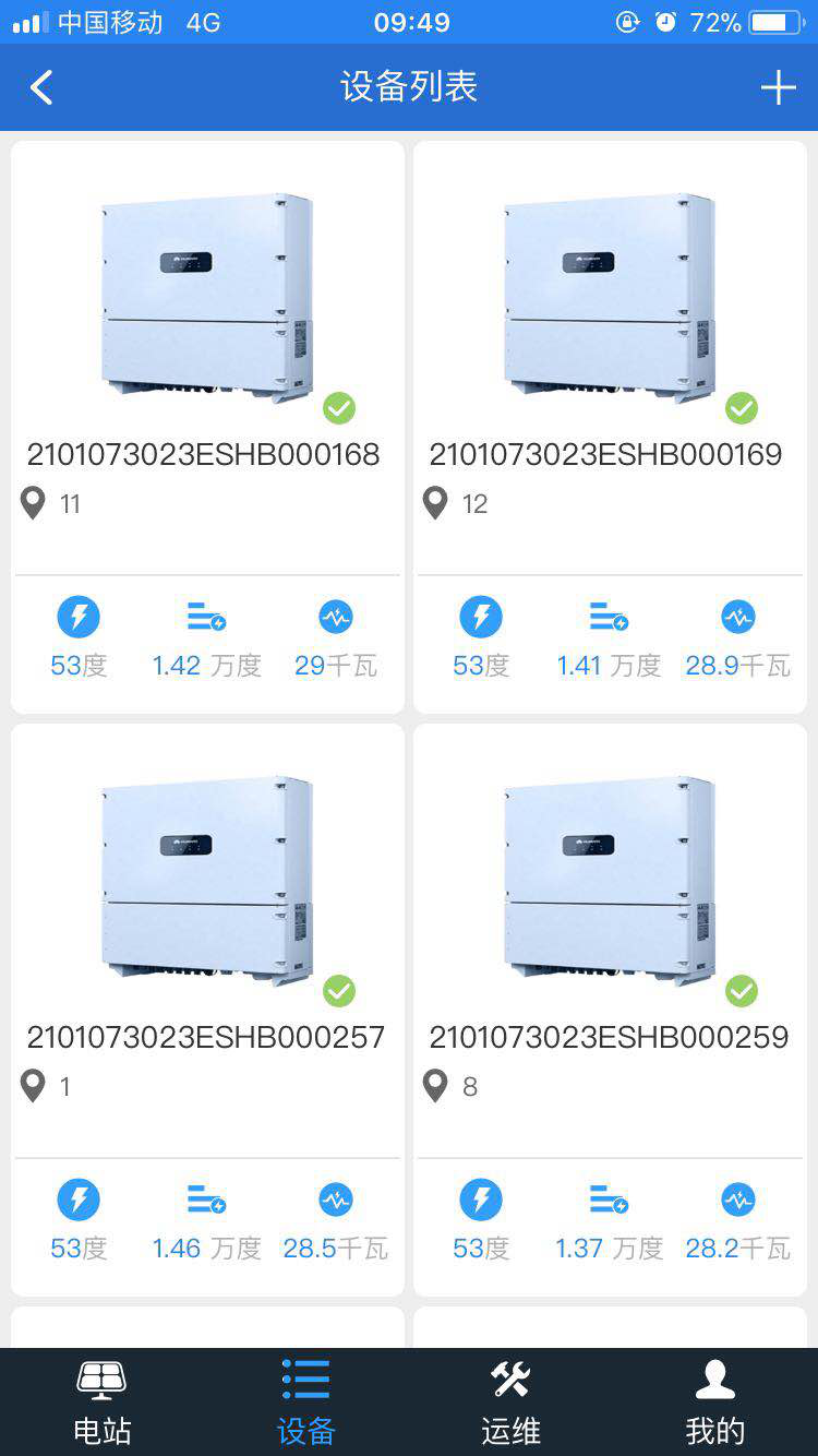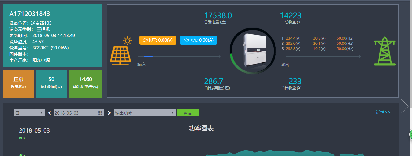 单个逆变器的详细数据展示与监控,帮助用户定位单个逆变器的具体问题: