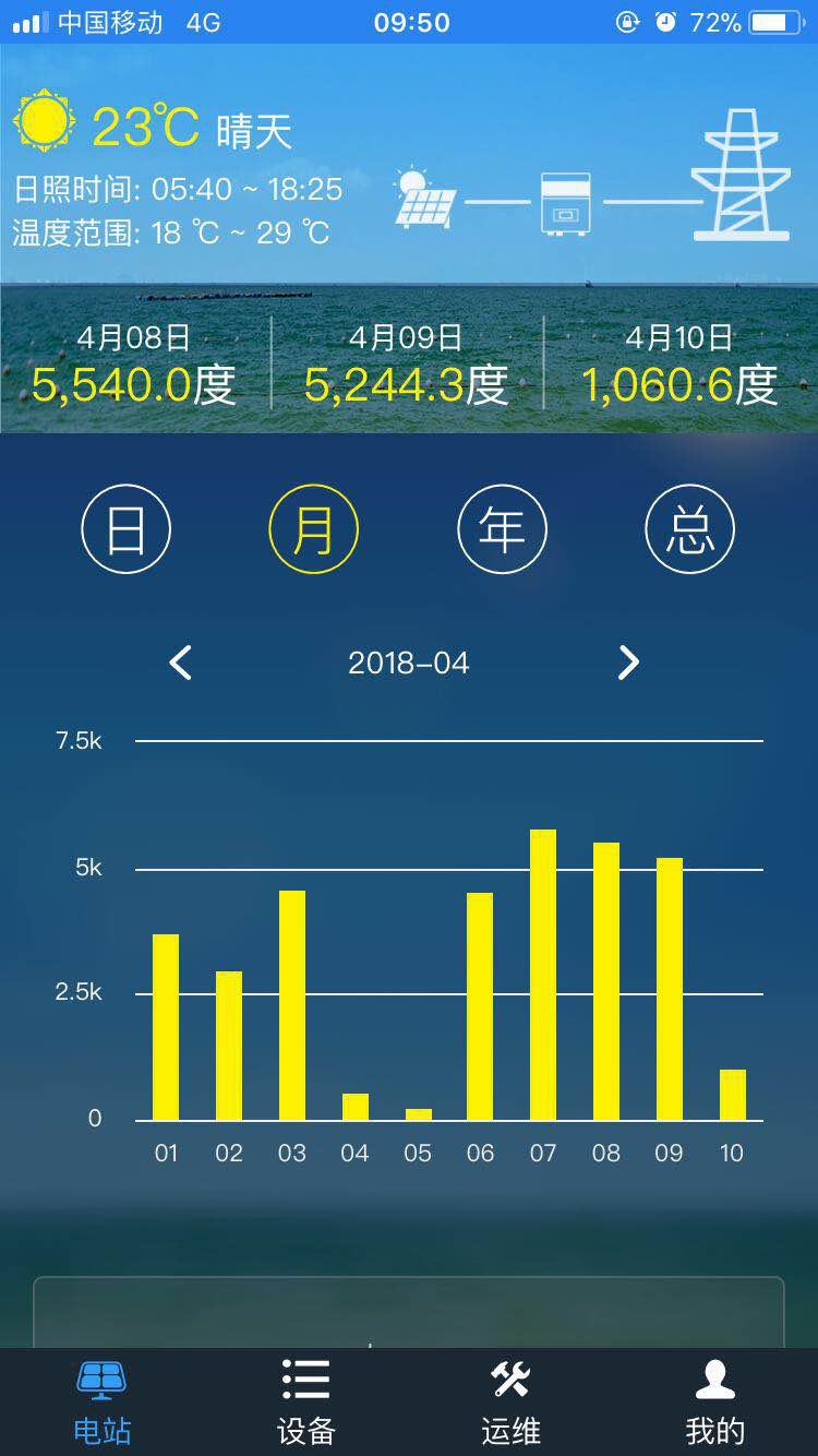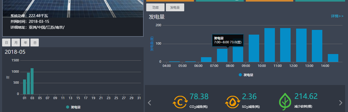 单个逆变器按照小时、日、月、年进行发电量的展示和计算;