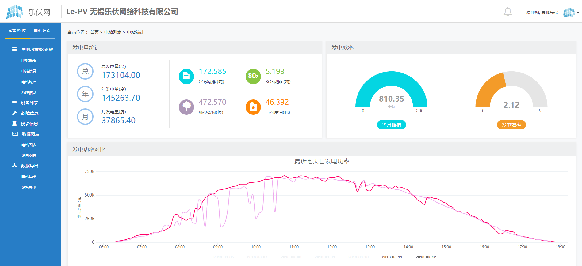 单个电站的绩效统计,帮助用户迅速了解电站的运行情况: