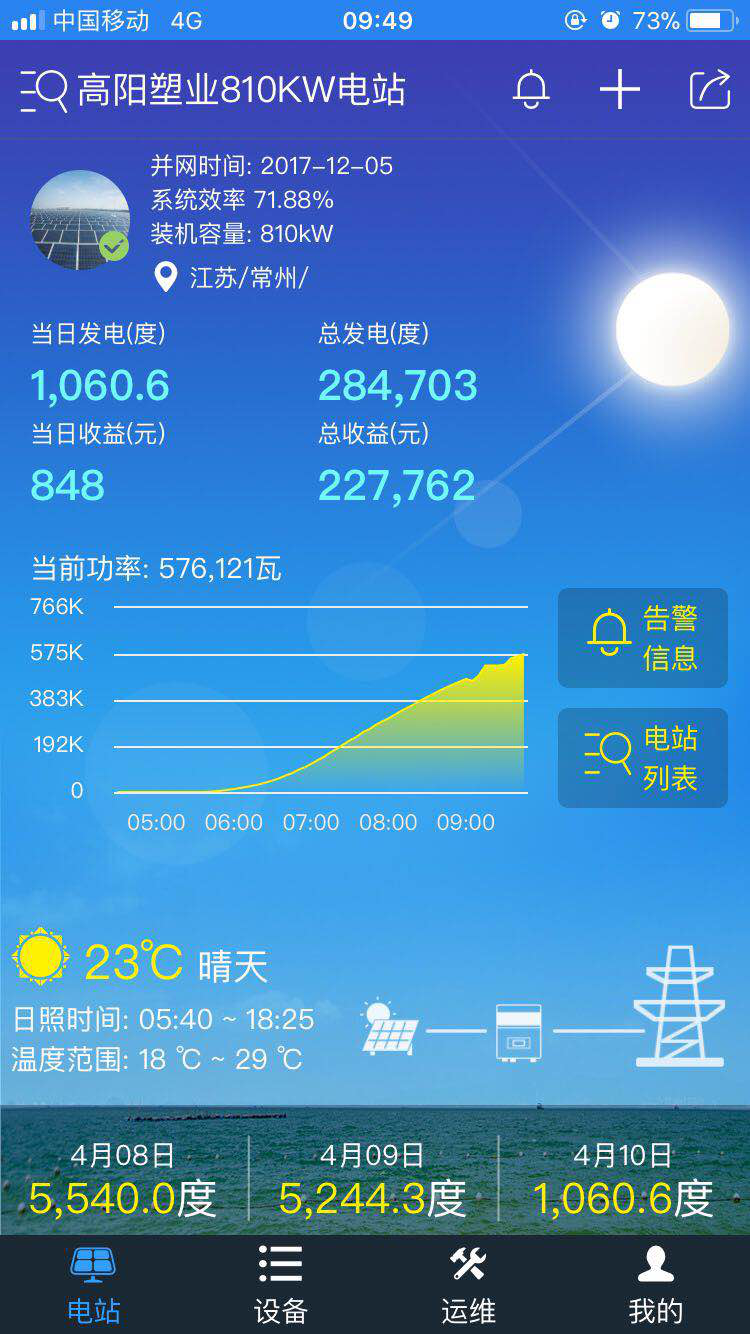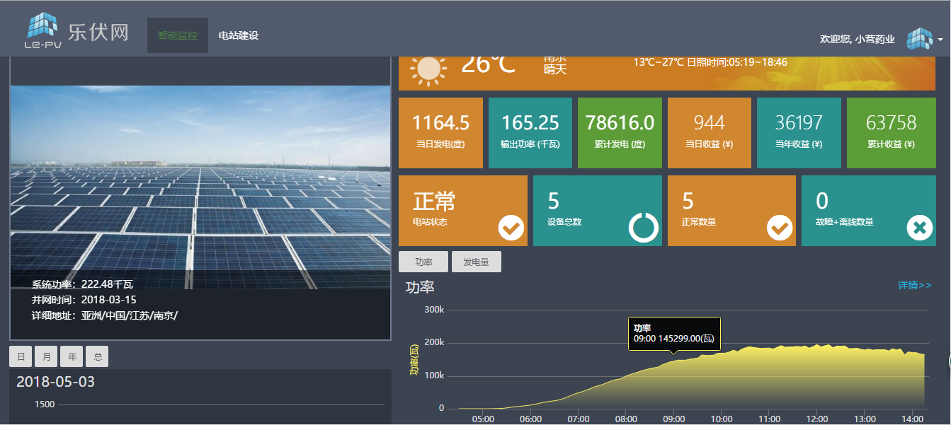 该页面是可以将电站运行的信息通过报表形式展现,告警更是人性化的与微信绑定,当电站或者逆变器出现问题会第一时间将信息发送至微信,让客户可以及时发现并维修。VIP用户更可以每日收到当日所有电站收益推送。