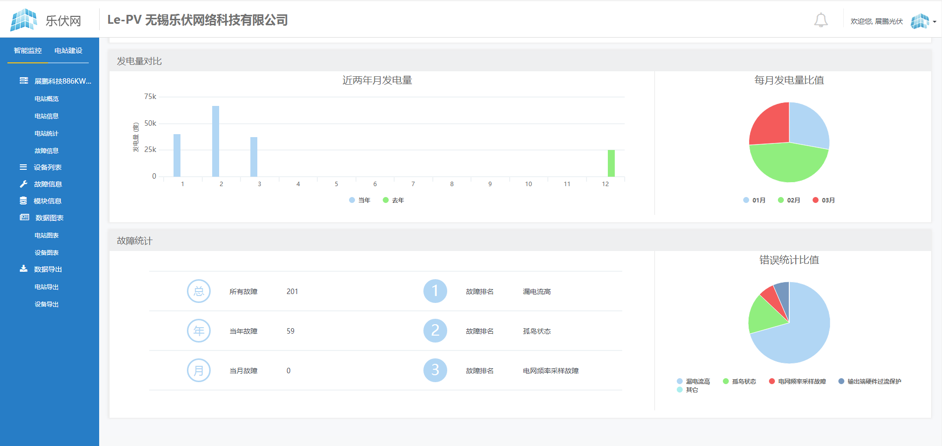 因此,在光伏扶贫项目中需要引入智能监控、智能运维。虽然目前扶贫电站大部分逆变器厂家自带GPRS数据采集器、监控平台。对于运维人员来说每天面对各种监控网址、不同的账户密码,繁杂的统计报表功能等,有时平台还会出现一些BUG而无人维护的现象,这时还是需要专业的三方平台来确保数据的可靠、稳定性。通过平台监控设备数据处理、运维统计数字化,从而提高后期运维效率。扶贫电站需要具有一定专业知识、水平的运维人员来维护电站最为合适,平台则需要乐伏运维监控平台作为线上的一个运维管理系统,确保设备能够实时监测、稳定传输至平台、线上数据分析、故障推送运维并及时处理,做到线上线下闭环管理,使能效与资产得到最大化。