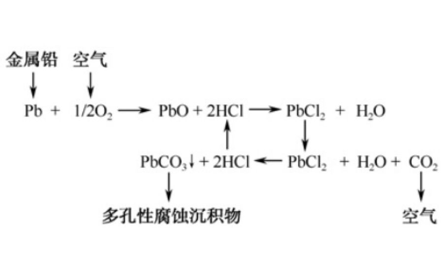 2)在氯离子作用下被焊表面出现锈蚀的机理通常金属铅因其表面覆盖着一层结构致密、附着力强的氧化铅层的保护而使其不受环境的侵蚀。然而,假若在 PCB 表面残留有某些含有氯离子( 如含卤素的活性松香助焊剂,空气中存在含有氯的盐雾成分及汗渍等)的残留物时,那么在氯离子的作用下将发生如图4所示的化学反应。所形成的氯化铅是附着力相当差的化合物,在含有CO2的潮湿空气中,氯化铅是不稳定的。从图9.23所示的循环腐蚀反应化学式的左下部可见,氯化铅很容易转变为较稳定的碳酸铅,并在该转变过程中释放出另一个氯离子,该氯离子再次游离侵蚀氧化铅层。该转变过程的最终产物碳酸铅层是多孔的白色材料,它不能保护金属。结果,大气中的氧接触金属铅并重新氧化金属铅的表面,氧化铅因存在氯离子的侵蚀,再次转变为氯化铅,在氯化铅进一步转换为碳酸铅时重新生成氯离子。而且只要环境中有水和二氧化碳,这种腐蚀过程将永无休止地循环进行下去,直到钎料中的铅全部消耗殆尽为止,从而造成电子装备的彻底损坏。因此研究被焊后表面的净度状况对某些高可靠性产品是非常重要的。