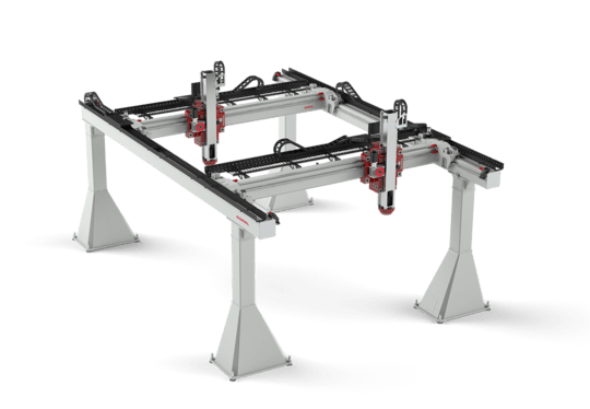 机器人龙门是一种横跨在地面或空中的钢结构框架,主要用于支撑和移动大型机器人,如大型机械手臂、自动码垛机器人等。机器人龙门通常由钢材制成,具有高强度和稳定性。根据不同的应用场景和需求,机器人龙门有多种类型,如单龙门、双龙门、悬臂龙门等。