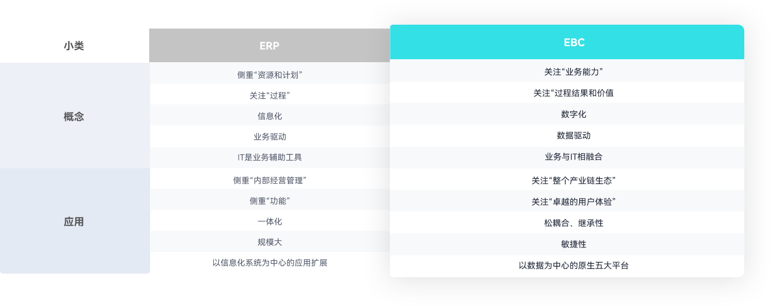 EBC平台是产生于互联网时期,在企业管理全面升级的大背景下孕育而出的。ERP关注企业内部资源计划,而EBC关注企业内部与外部、关注产品及生态。