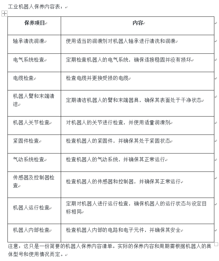 工业机器人保养内容表