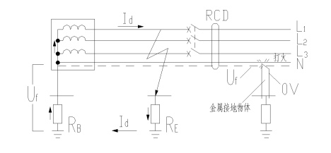 对于TT系统,推荐采用剩余电流继电器。因为当发生单相接地故障时,故障电流很小,且较难估计,达不到开关的动作电流,外壳上将出现危险电压。此时N线穿过剩余电流互感器。
