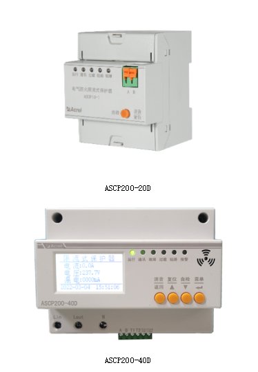 保护器主要有两个型号适用于地下商场用电监控,ASCP200-20D是简易型保护器,主要适用于额定电流20A以下的照明和插座回路。ASCP200-40D是功能型保护器,主要适用于额定电流40A以下的插座和其他用电回路。两种型号保护器均采用导轨安装,可以与空气断路器并排安装。