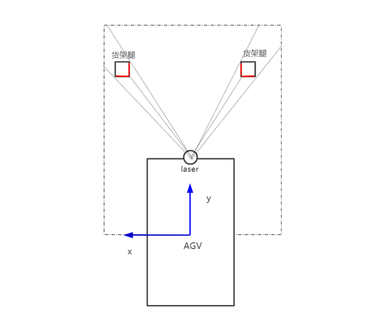 货架的摆放不是一直都能固定在某个位置上的,当AGV要对货架进行一些拉取或者顶升等操作时,需要精准的知道货架的位置,此时AGV自身在地图上的定位是准确的,但是货架的位置在地图上却是未知的,这样我们需要对货架进行识别来确定货架的位置。而某些场景要求不能对货架腿进行改造(如粘贴反光膜等),这个时候就需要对货架腿的形状做识别。